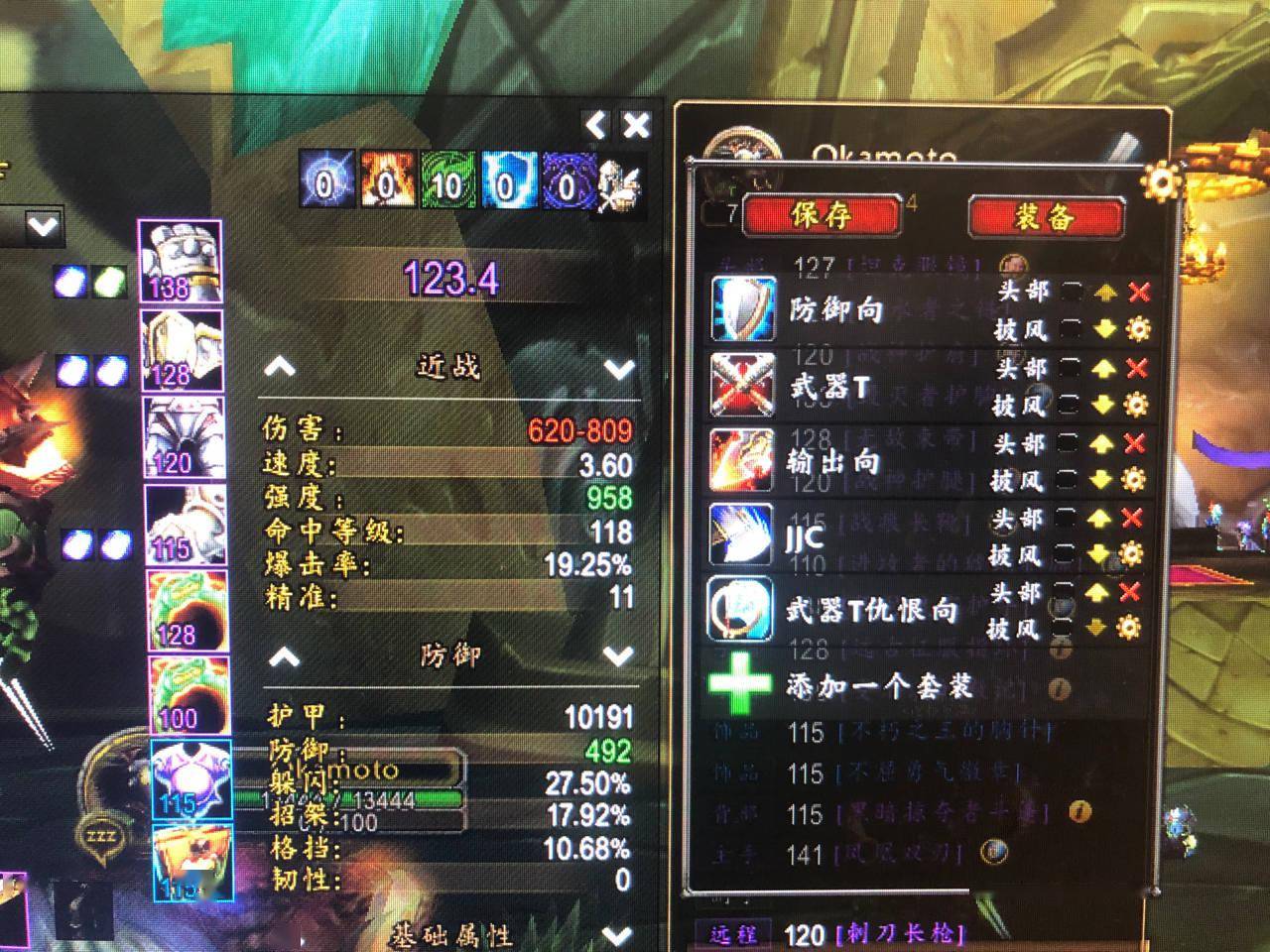 野团不适用武器坦。武器坦比较脆,在不算格挡的三维情况下,招架只比熊多一点,可护甲却少很多。这就要求治疗不能偷懒划水,毕竟武器坦就像WLK时期的血DK一样,存在电梯血的风险。