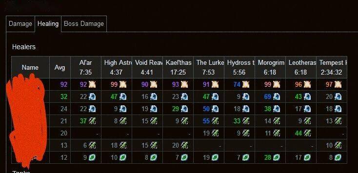 在治疗方面,WCL( Warcraft Logs,游戏战斗记录网站)的高分是一定要争取的。通常来讲,紫色和粉色的分数没有太大的差异。要是能拿到蓝色分数并且完成任务,这就已经很不错了。至于灰色分数嘛,一般得到这个分数的人大多是在划水呢。