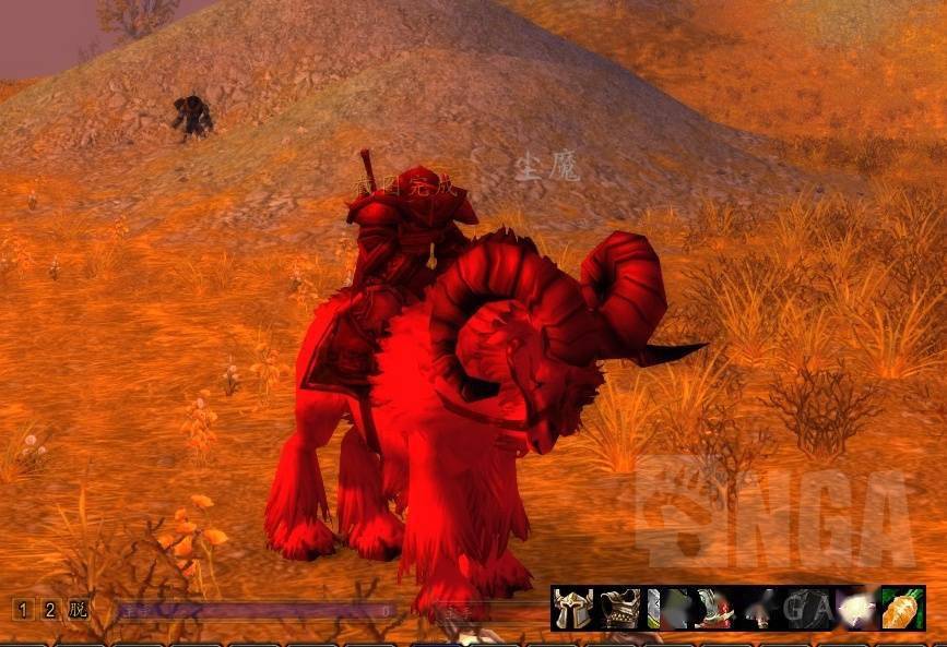 当武器触发特效之后,本体就会全身变得通红。这个时候要是骑上坐骑的话,坐骑也会一样红通通的。
