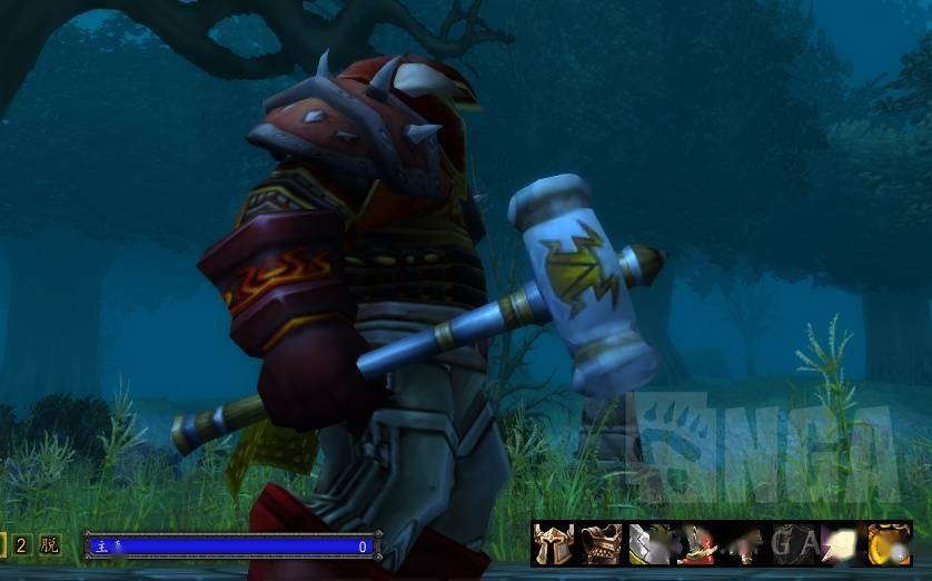 这武器的样子也好不到哪儿去。在《魔兽世界》里,大部分锤子都很丑,炎魔锤和火炬除外。