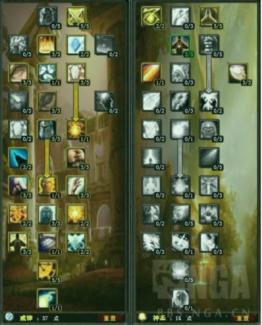 戒律牧的天赋基本上没什么可争议的地方。它的深层天赋特别优秀,所以在整个WLK阶段,只用一套天赋和雕文就够了。这套天赋是57/14,具体的天赋就像图里显示的那样。