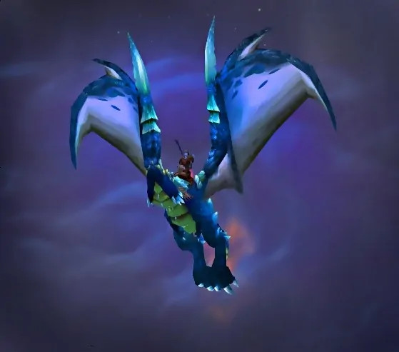 魔兽世界里有一种飞行坐骑,叫做蓝色始祖幼龙,玩家角色想要使用它的话,角色等级最低得达到70级,骑术等级要达到300才行。下面附上它的图片。